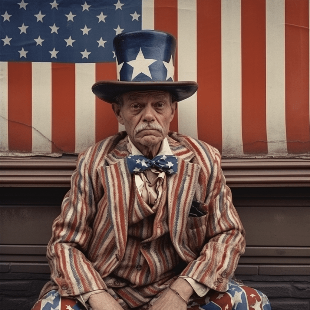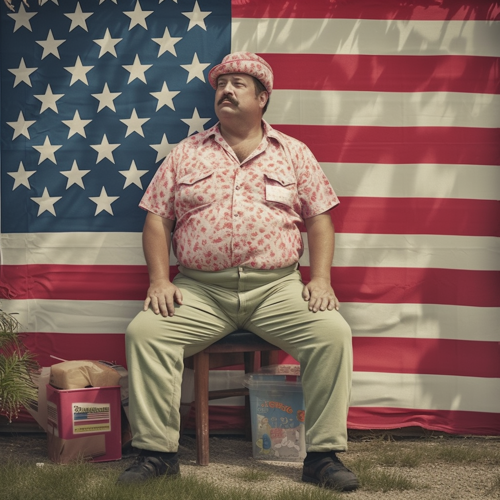 During the past several months I have been deep diving one prompt using Midjourney and accepting every single result it provided, no matter how absurd. I currently have over 1,000 images created with the current target of 1776, in honor of the year our nation was founded. The prompt is simply “photograph of a typical American”, deliberately vague and subjective with the intention of allowing the AI to actively participate in what the phrase means.