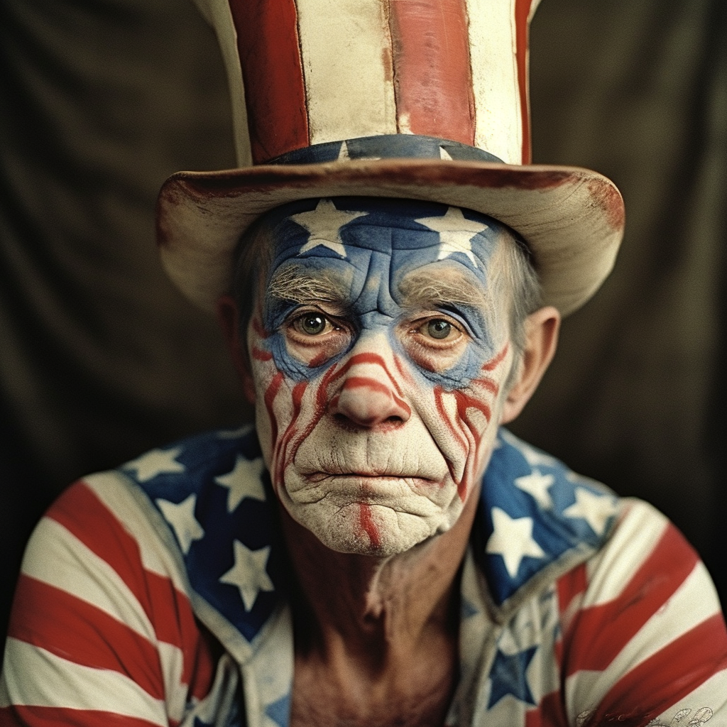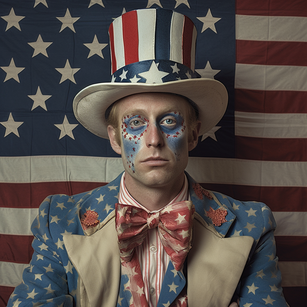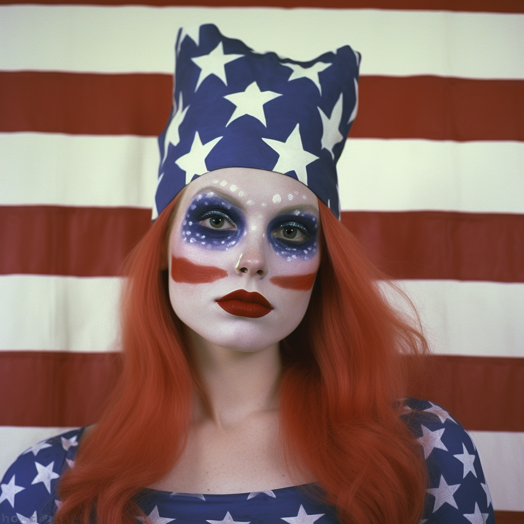 Subjects with their faces painted are not uncommon results in Typical American, representing upwards of 10% of the results so far out of over 2,500 generations. These selections show the broad range of face painting styles, from ultra-patriotic, to terrifying. Sometimes the face paint looks worn, as if applied days ago, lacking color and appearing poorly applied, other times the makeup looks fresh and professionally done. These Typical Americans appear to be trying to express themselves more creatively than their unpainted counterparts.