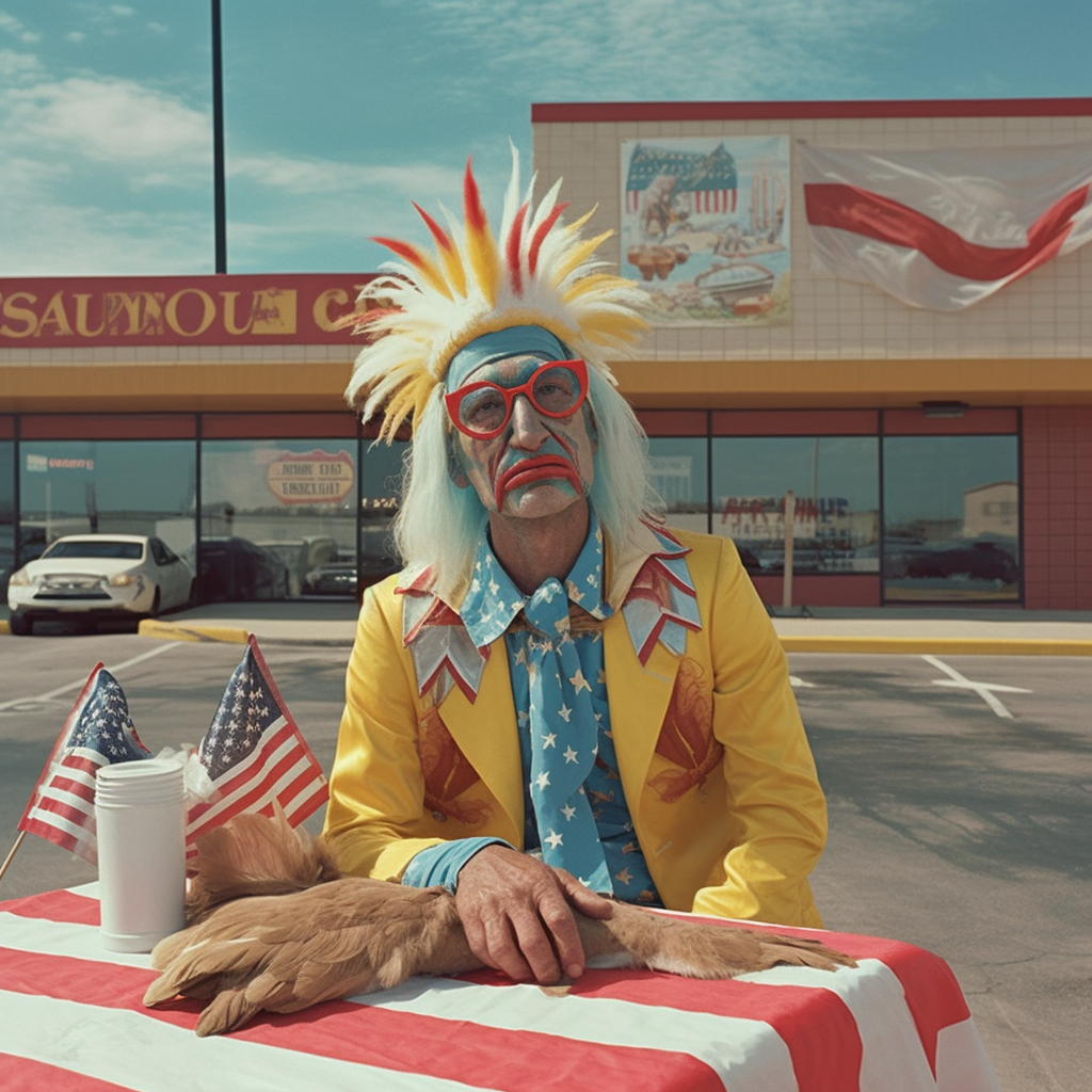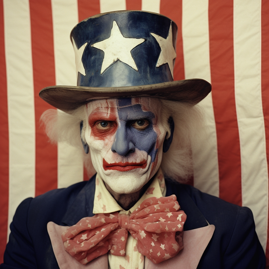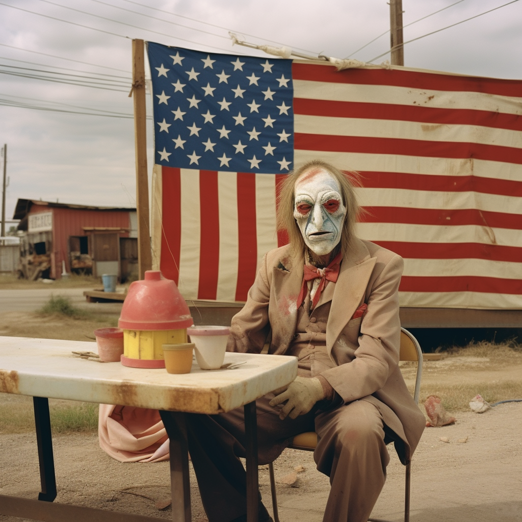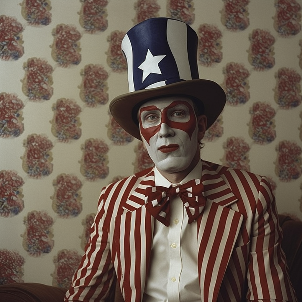 Subjects with their faces painted are not uncommon results in Typical American, representing upwards of 10% of the results so far out of over 2,500 generations. These selections show the broad range of face painting styles, from ultra-patriotic, to terrifying. Sometimes the face paint looks worn, as if applied days ago, lacking color and appearing poorly applied, other times the makeup looks fresh and professionally done. These Typical Americans appear to be trying to express themselves more creatively than their unpainted counterparts.